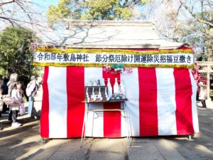 暦の上では明日から春(立春)を迎えます。 境内に響く「鬼は外、福は内」の声とともに、皆様の心身に溜まった邪気が払われ、清々しい春を迎えられることを心よりお祈り申し上げます。